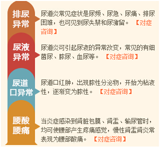 1、尿道炎:尿道炎程逆行感染,导致病菌直接进入尿道所致。患者在患病期表现为排尿时尿道会有种烧灼痛、尿频和尿急,导致排尿困难。